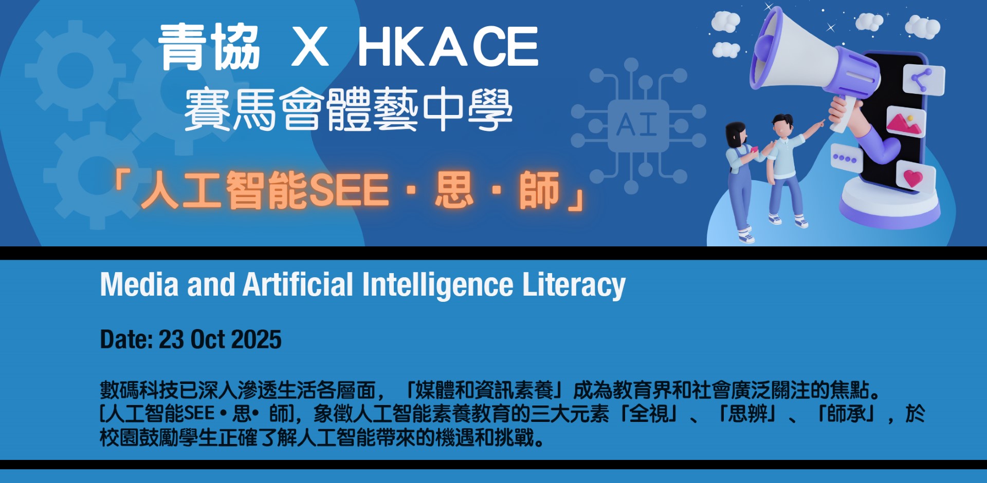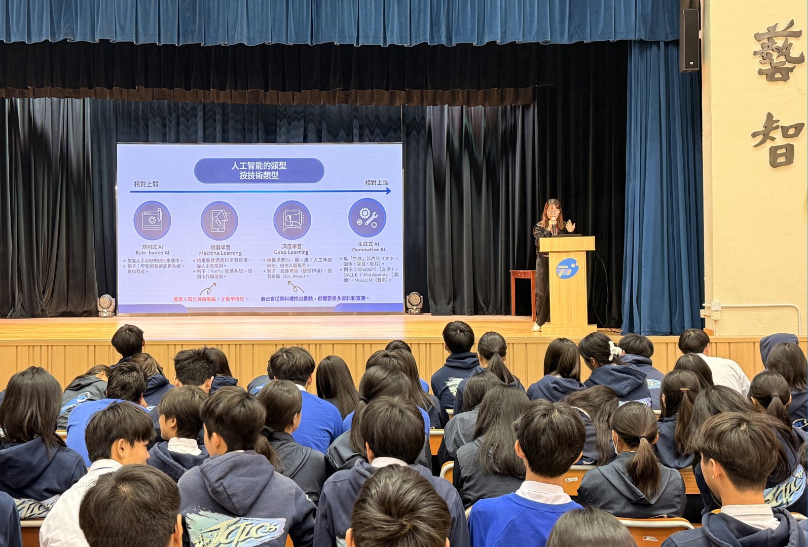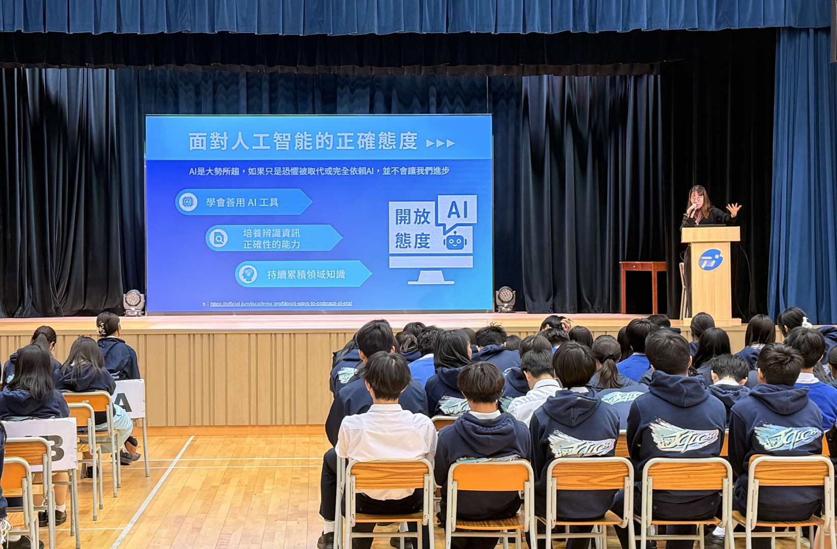 An Information Literacy talk titled 人工智能「SEE、思、師」, hosted by the Hong Kong Federation of Youth Groups, was organized for F.4 students during Multiple Exposure Lesson on October 23, 2025. This engaging session aimed at equipping students with a deeper understanding of AI and inspiring them to think critically about its implications. Students were encouraged to explore the potential benefits and ethical challenges of AI, helping them become responsible and informed future citizens.