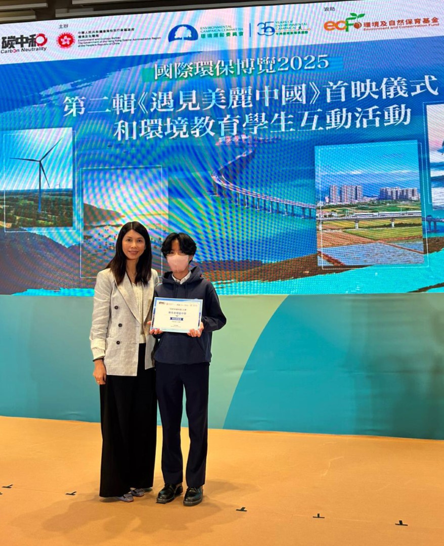 On 31 October, F.4 Geography X2 students and selected Green Club members participated in the Eco-Expo Asia activity jointly organized by the Geography Panel and Green Club. Students viewed the documentary 遇見美麗中國, followed by an interactive session with the Deputy Director of the Environmental Protection Department. During the session, the Deputy Director visited each school’s seating area and invited a student representative to give a brief two-minute sharing on their campus eco-tour routes or environmental initiatives. Our student representative (4D23 LO Hei Shun) confidently introduced the beautiful part of our school, showcasing our commitment to sustainability and environmental awareness.
