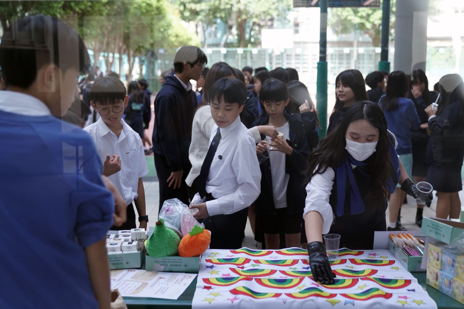 The activity kicked off on Day 1 by distributing bananas to students, leveraging their natural stress-relieving properties to encourage a good start to the week. The main event on Day 2 was a vibrant celebration of support, featuring multiple engaging booths. A highlight was the collaboration with our parents (PTA), who prepared 800 delicious snacks, including popular treats like strawberry chocolate and bubble milk tea, creating a festive atmosphere.