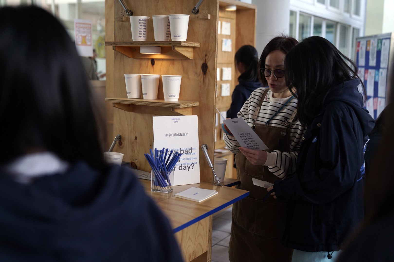 Furthermore, we collaborated with Caritas social workers to train parents as "Bad Day Baristas," who then hosted a "Bad Day Cafe" booth, where students learned practical skills for recognizing their emotions and gained essential tips on how to constructively handle them effectively.